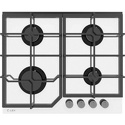 Поверхность: варочная панель • Тип поверхности: газовая • Рабочая поверхность: закаленное стекло • Число конфорок: 4 • Установка: независимая • Газовые конфорки: всего - 4 • Газ-контроль конфорок: есть • Тип управления: механическое • Переключатели: поворотные • Электроподжиг: есть, автоматический • Размеры: 600x510x40 мм • Размер ниши для встраивания: 560x480 мм • Цвет: панель - белый