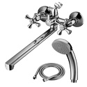 Тип: для ванны, для душа, для умывальника, двухвентильный • Монтаж смесителя: настенный • Высота излива: 148 мм